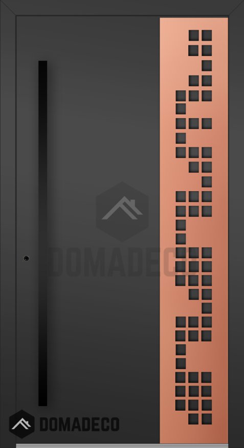 LIM C27 - aluminum entry door covered copper sheet with cut-out squares