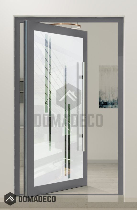 PIVOT Glass S10 - aluminium frosted pivot door with with transparent decor