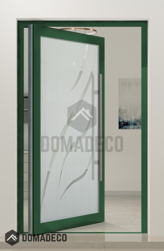 PIVOT Glass S11 - aluminum frosted pivot door with transparent decor