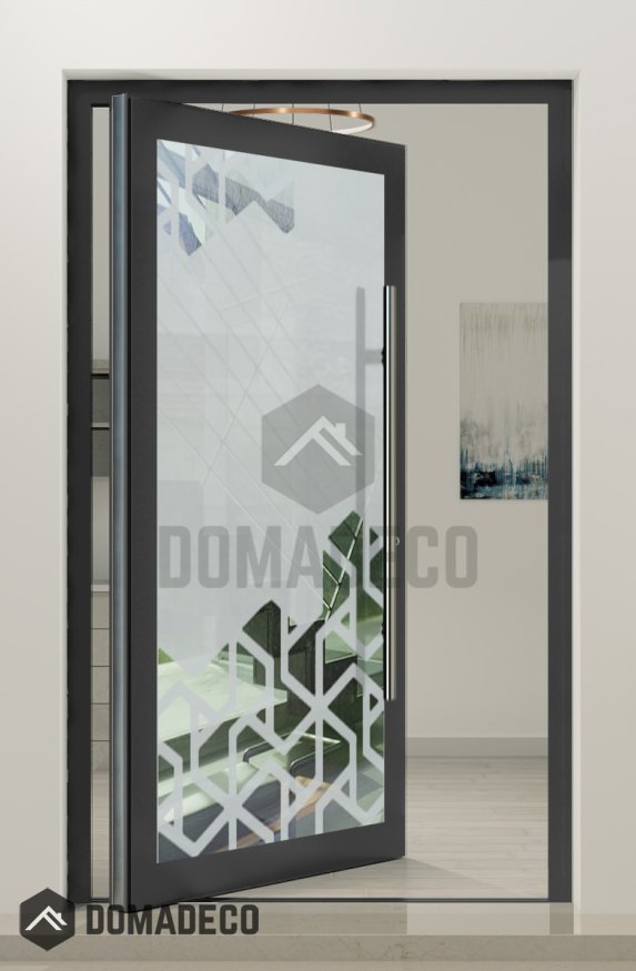 PIVOT Glass S12 - aluminium frosted pivot door with with transparent decor