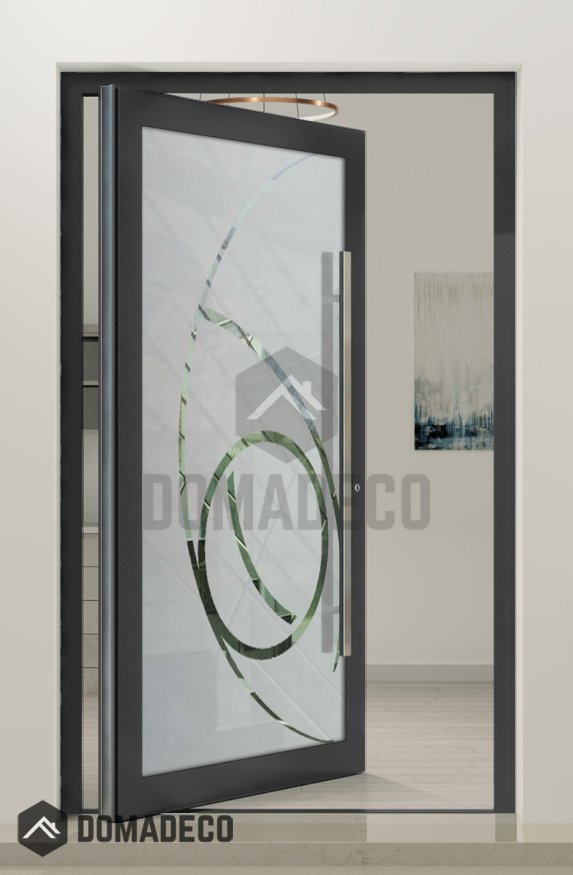 PIVOT Glass S16 - aluminium frosted pivot door with with transparent decor