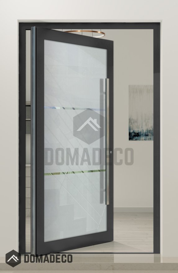 PIVOT Glass S2 - aluminium frosted pivot door with two transparent stripe