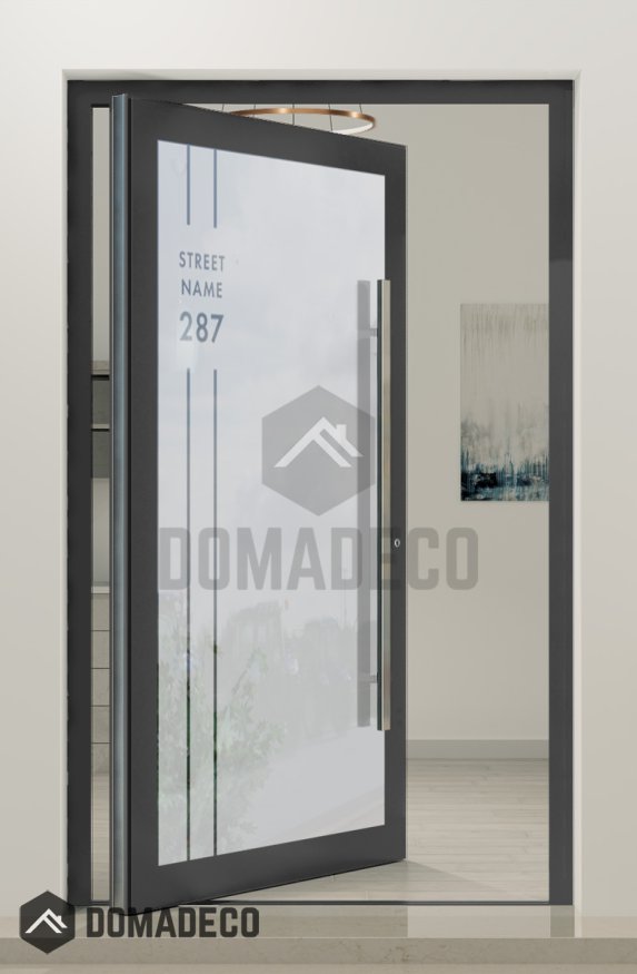 PIVOT Glass S23 - aluminum frosted pivot door with with with transparent home adress