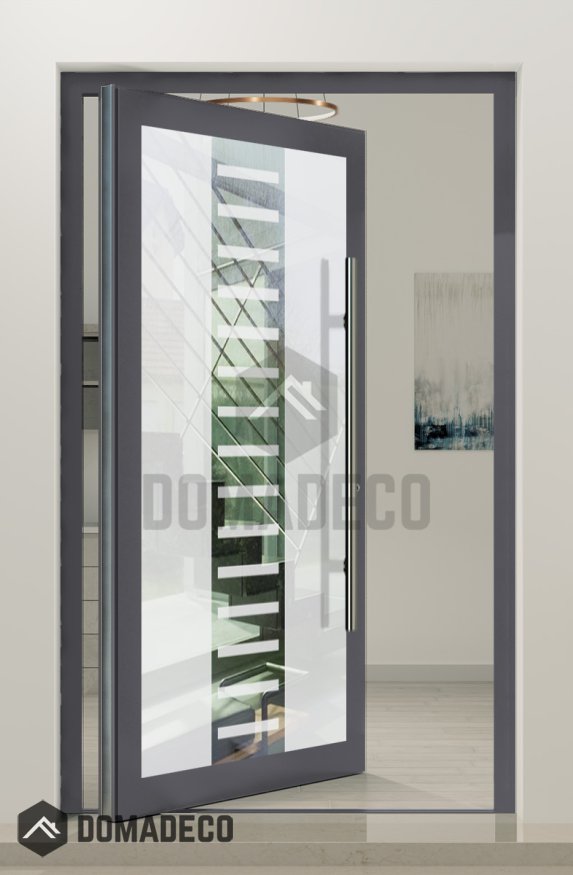 PIVOT Glass S6 - aluminium frosted pivot door with with transparent decor