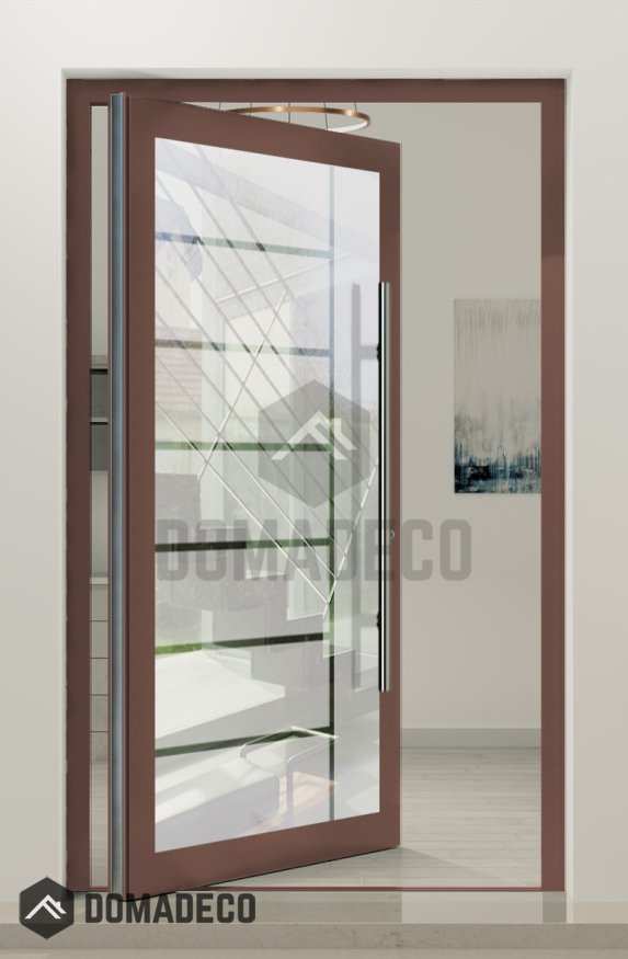 PIVOT Glass S7 - aluminium frosted pivot door with with transparent decor