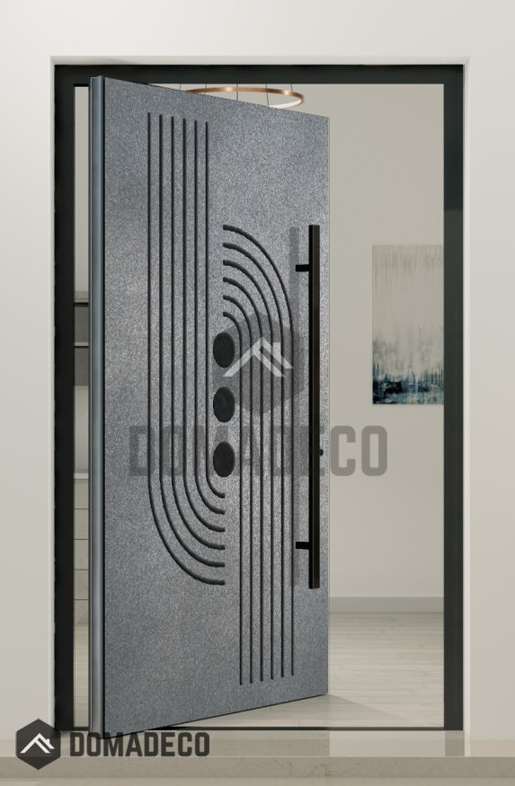 PIVOT M13 - pivot door with grey texture of milled metal