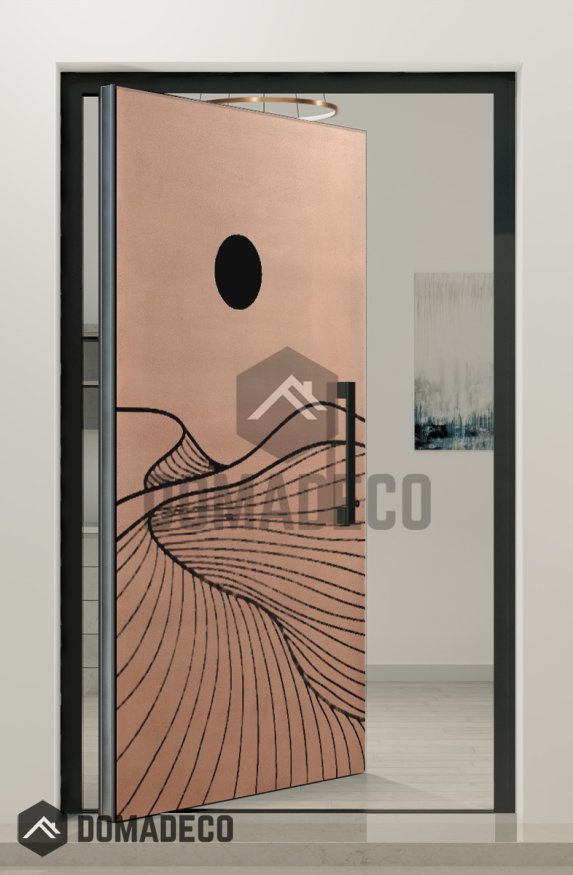 PIVOT M14 - aluminium pivot door with copper texture of milled metal