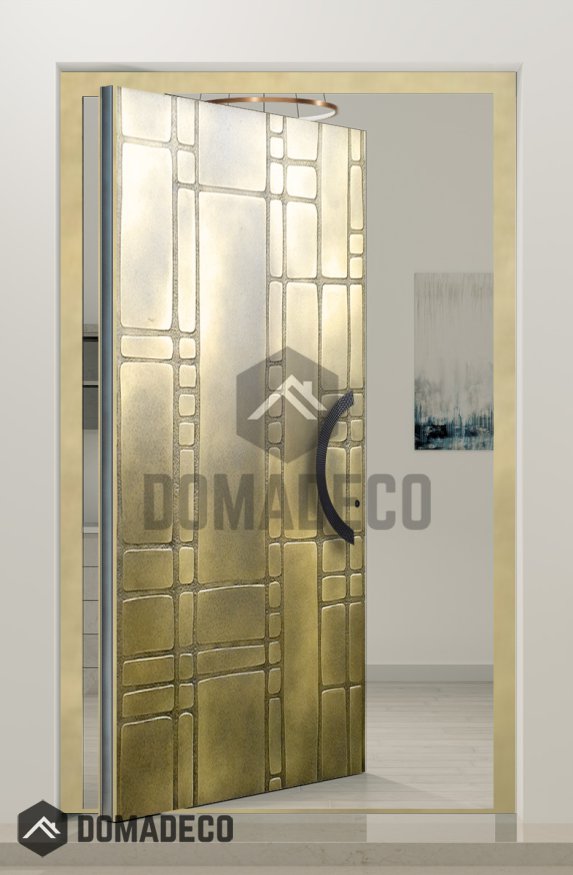 PIVOT M18 - aluminum pivot door with yellow brass texture of milled metal