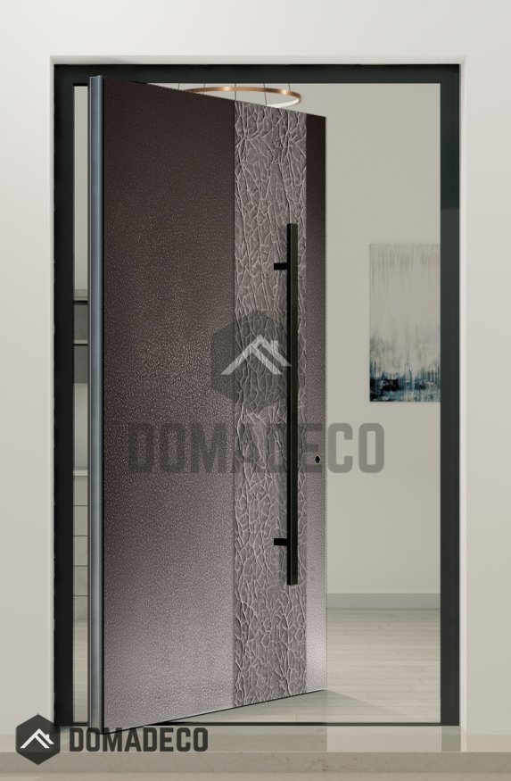 PIVOT M27 - aluminum pivot door with door with brown texture of milled metal