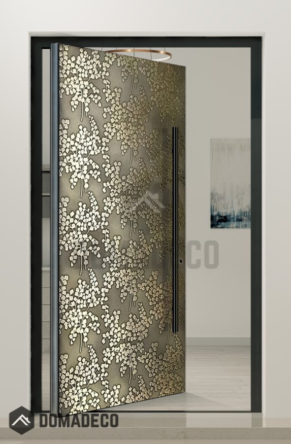 What sets the PIVOT M28 apart is its striking brass-textured milled metal surface. This finish is meticulously crafted through an advanced milling process that engraves fine, precise textures into the brass layer, resulting in a unique interplay of light and shadow that enhances the door’s depth and character. The warm, golden hues of the brass texture evoke a sense of luxury and timeless sophistication, while the subtle milling patterns add a modern, industrial edge. This combination creates a door that is not only a functional entryway but also a captivating piece of architectural art.