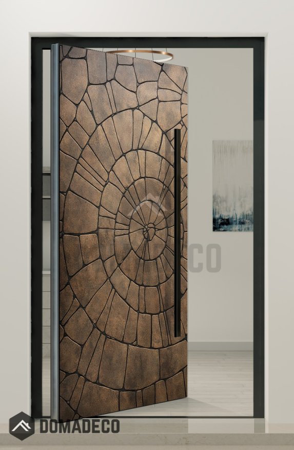 PIVOT M30 - aluminum pivot door with brown texture of milled metal