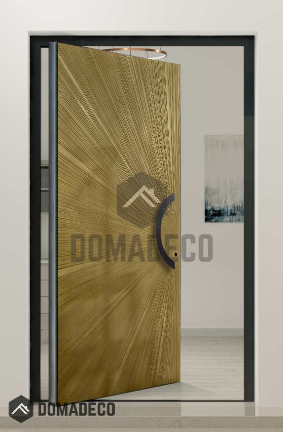 PIVOT M8 - aluminium pivot door with gold texture of milled metal