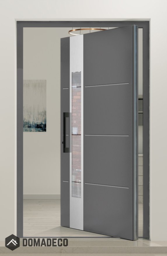 - Aluminium pivot door and the door frame;